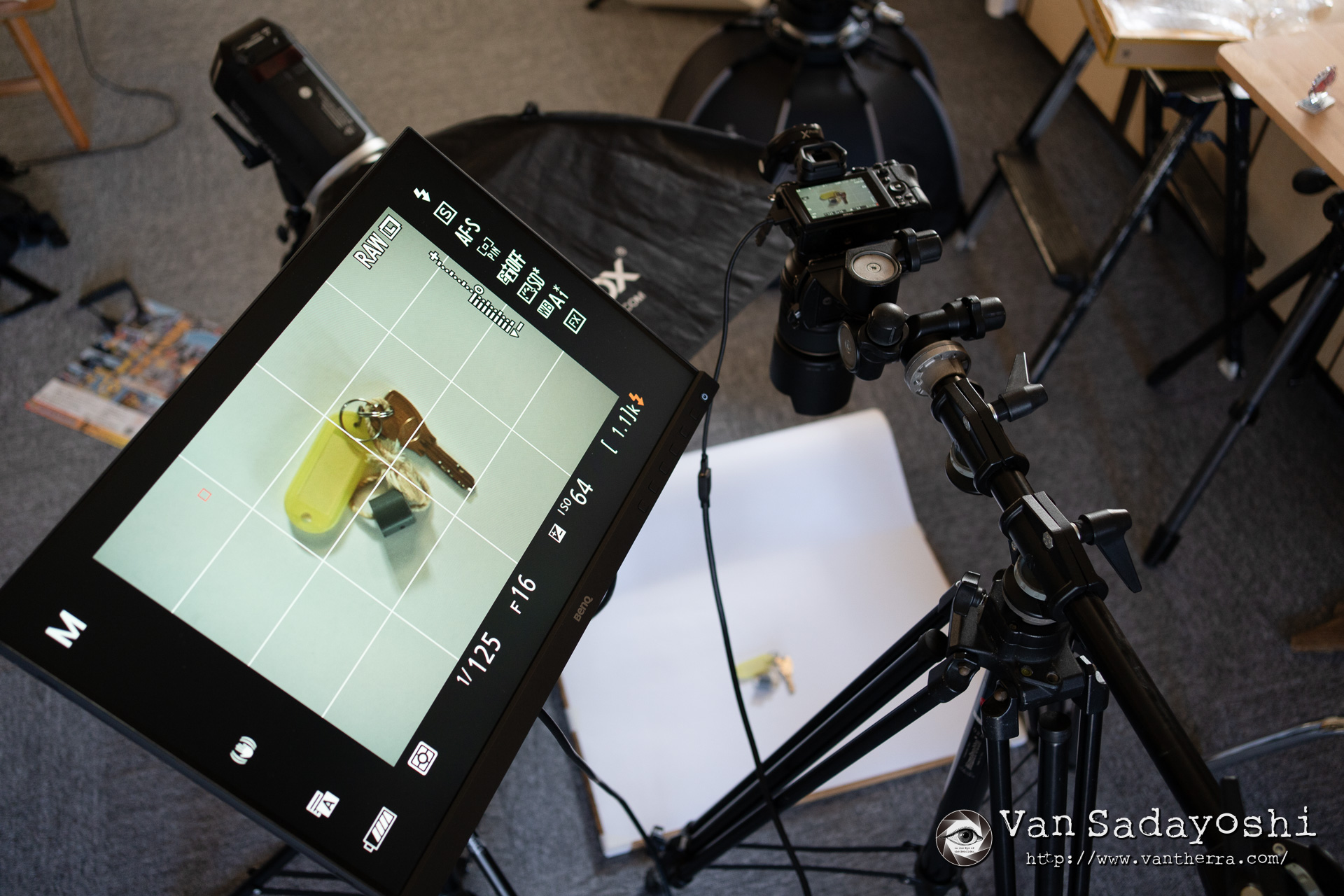 ブツ撮り専用機にすることになったNikon Z7の背面液晶をそのまま複製して表示してくれますから、グリッド表示もそのまま使えます。これで合わせれば、複数の被写体を入れ替えながら撮る際も、まあまあの精度で同じ位置に被写体を持ってくることが出来ます。