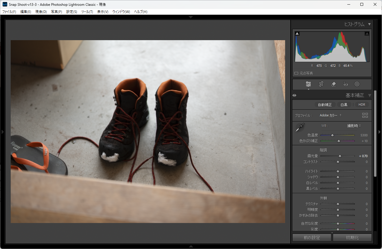 例えばこの写真、雪の日に事務所までお散歩した際の写真でして、撮った時点で向こう側のコンクリートに気を使いすぎてアンダーにしちゃったのもありますが、それにしたってブーツのこちら側が暗いんであります。極端といっても良いんじゃないかと思うくらいです。