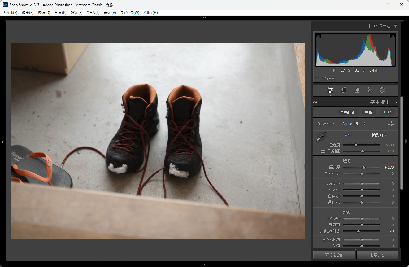 ひとつ問題なのは、かすみの除去は実際にレンズに触っちゃったりした時のようにコントラストを下げ、ふわふわ成分を混ぜて絵を柔らかくすると同時に、彩度も下げてしまうものですから、手順として露光量→かすみの除去みたいにRAW現像の最初にかすみの除去を入れたほうが安定して作業出来ますし、逆にいえば色については先にかすみの除去を触っておかないと、また後で彩度を足さなければならなくなったりします。その点は要注意。