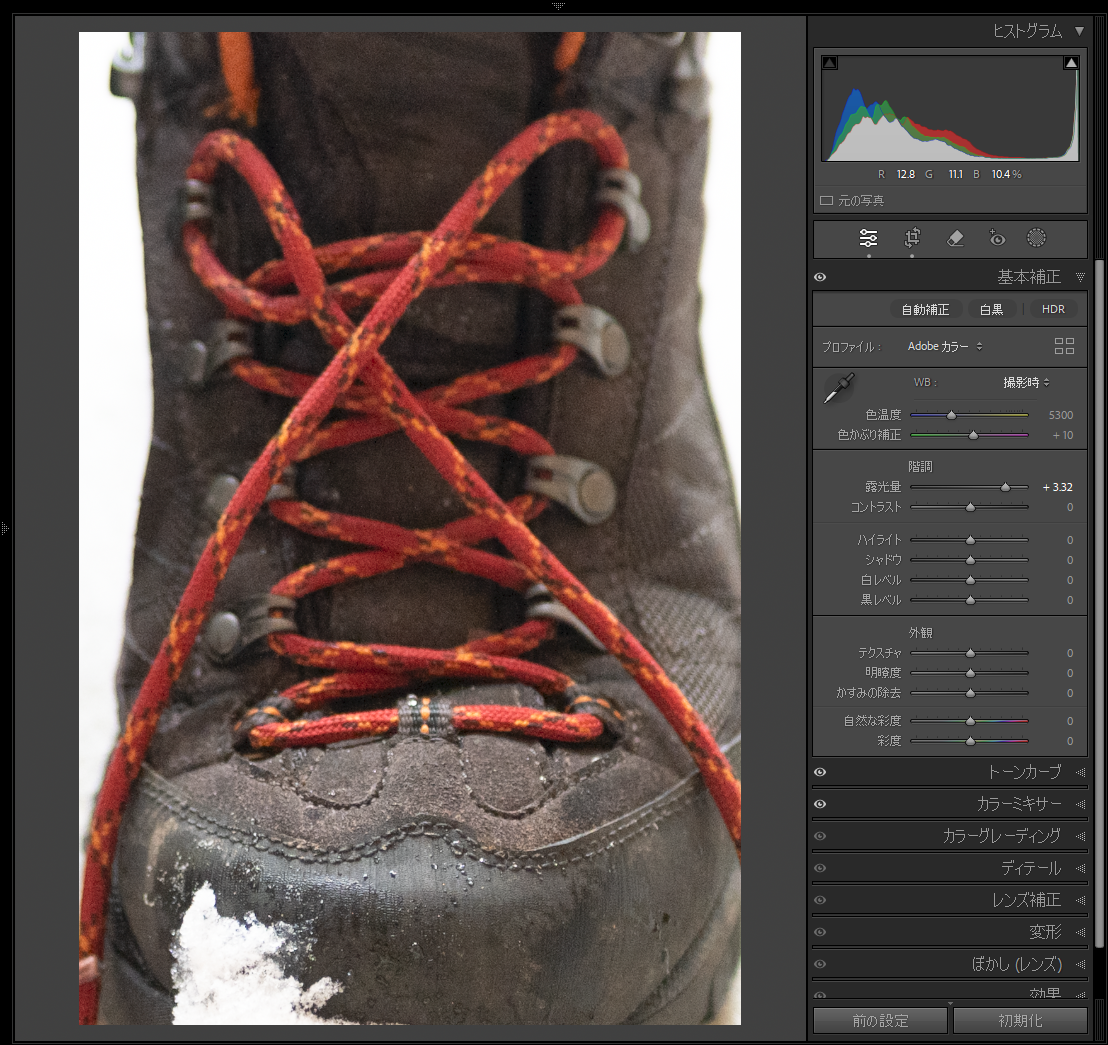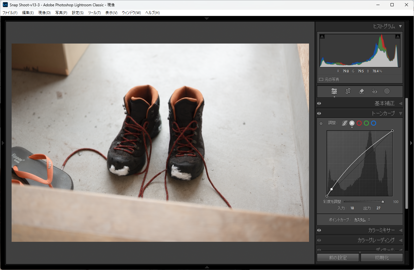つまり、トーンカーブで明るさを操作する際は、出来るだけ少ないポイントでいじくったほうが自然な見た目で綺麗なのですが、最近のRAWは自然な操作ではシャドーがちゃんと持ち上がってこないくらい重いんです。