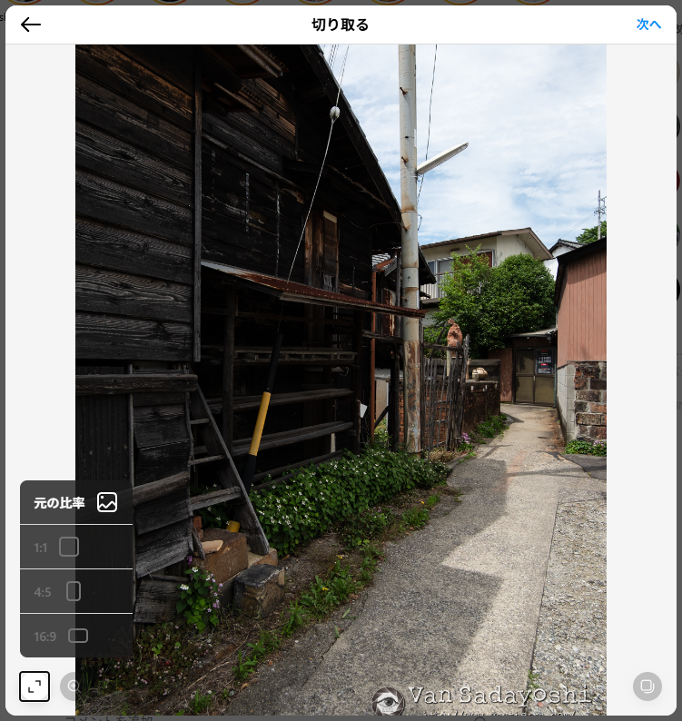 ↑これさきほど実際に4:3で書き出した写真をインスタにアップしようとしたところなのですが、投稿の写真は変わらず縦が一番長いのが4:5でありまして、4:3はそれよりも縦がちょっと長いので長辺が切られてしまいます。